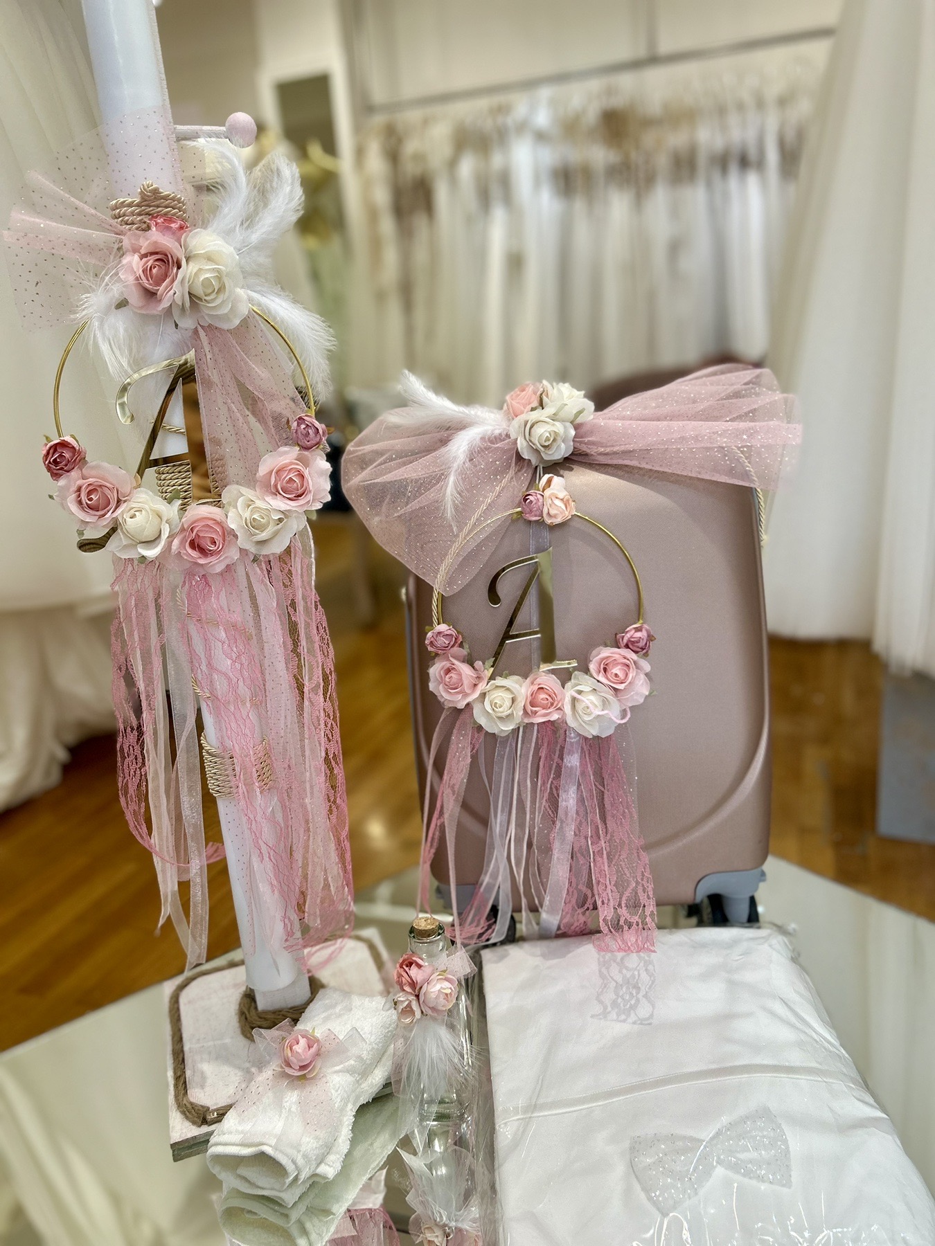 Ολοκληρωμένο πακέτο βάπτισης Χρυσό στεφάνι με μονόγραμμα