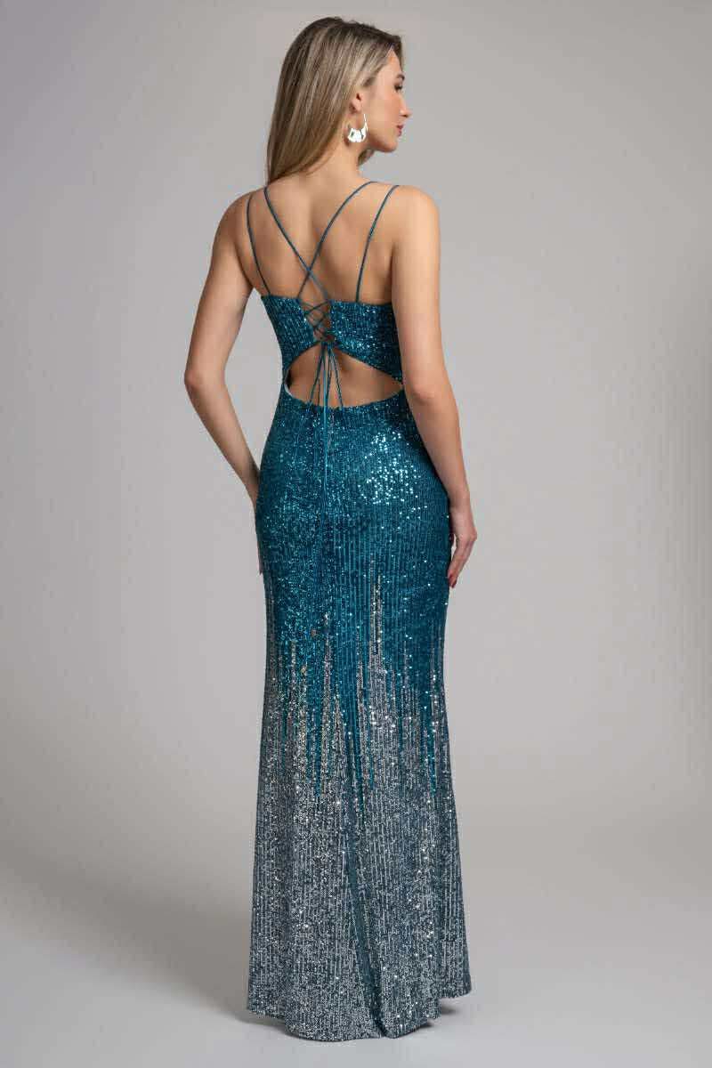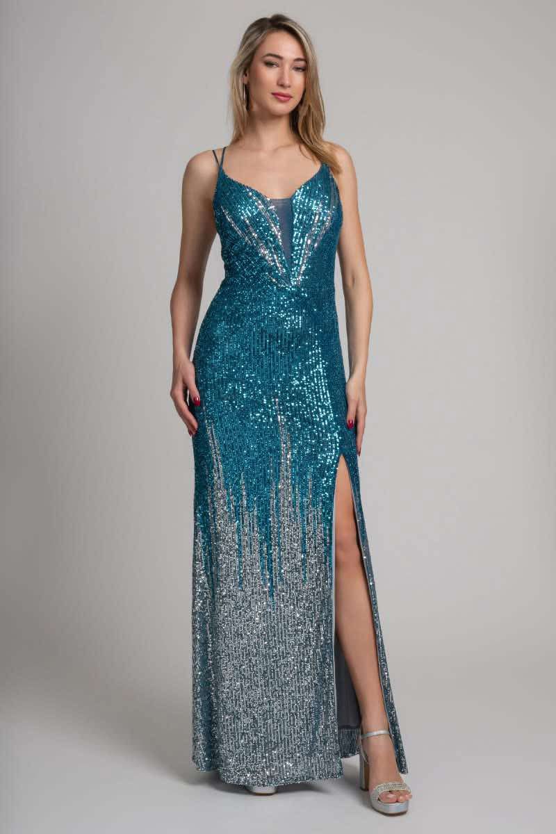 Μακρύ φόρεμα με παγιέτα και σκίσιμο