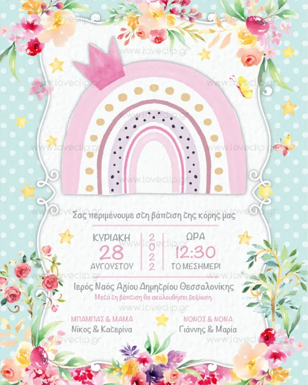 Προσκλητήριο βάπτισης Ουράνιο τόξο