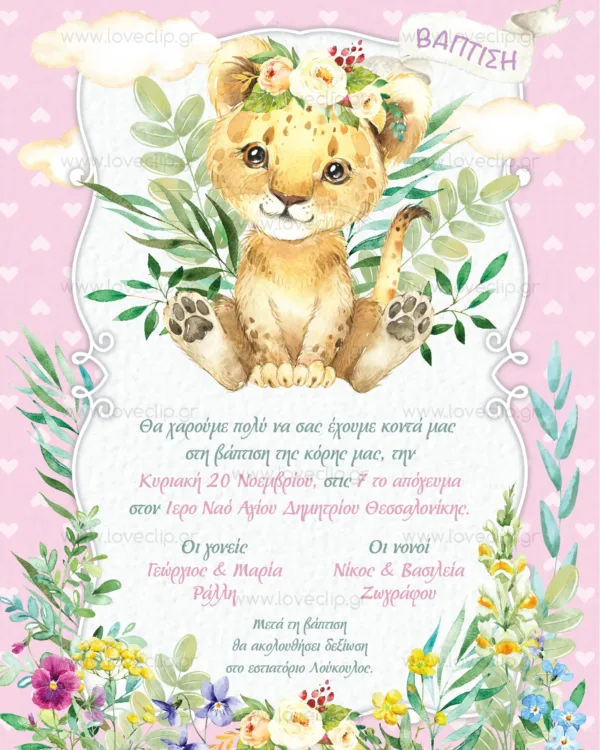 Προσκλητήριο βάπτισης Λιονταράκι