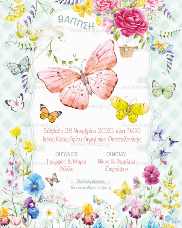 Προσκλητήριο βάπτισης Πεταλούδες