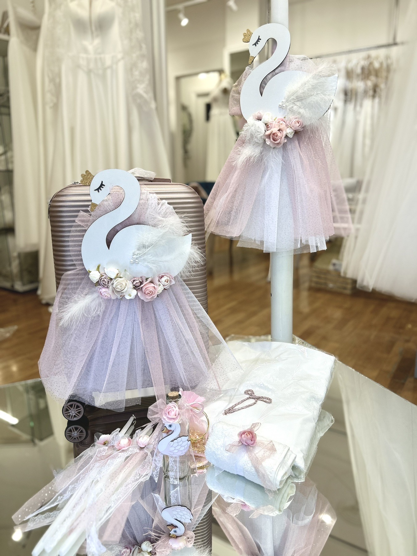 ΚαλάθιΚουτιά βάπτισης για κορίτσι, που περιλαμβάνουν όλο το σετ βάπτισης, ζωγραφισμένα στο χέρι. Μπορείτε να επιλέξετε κουτί βάπτισης ή και βαλίτσα βάπτισης.