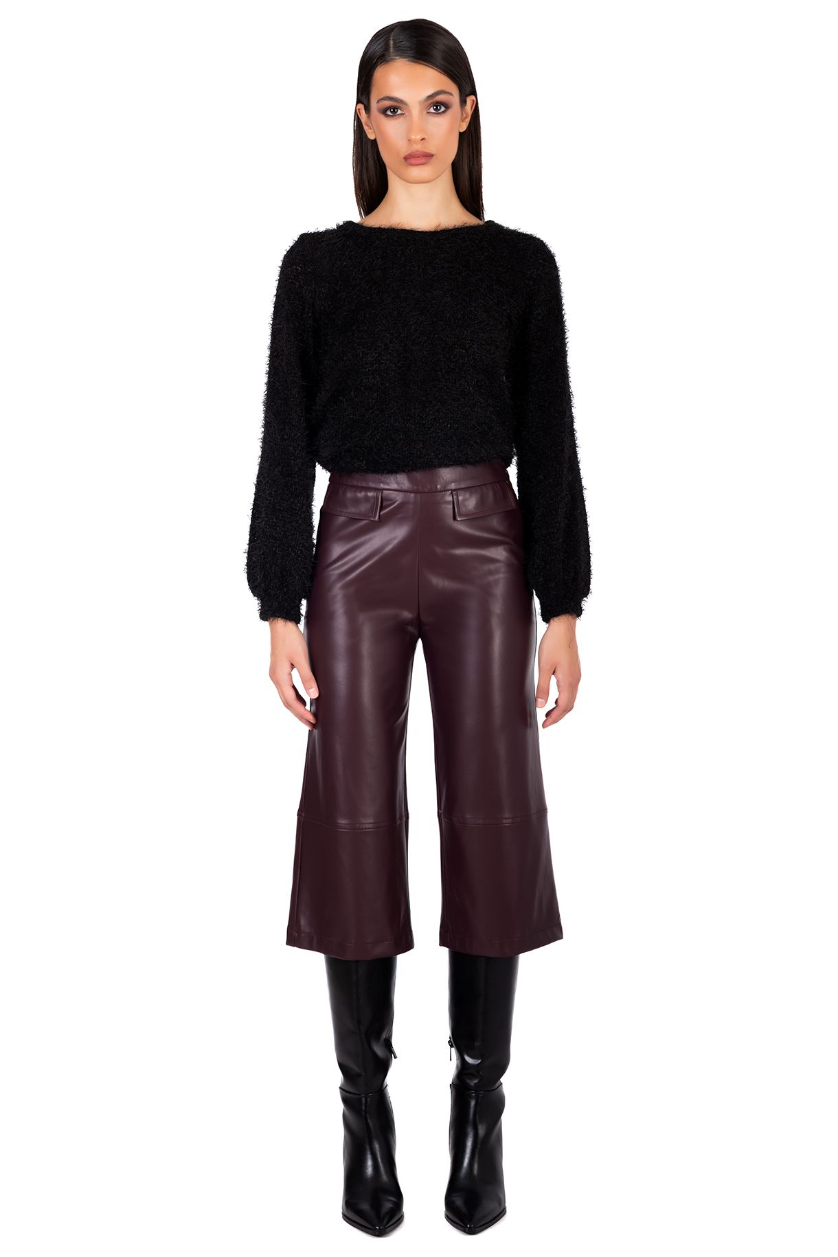 Γυναικείο δερμάτινο ΖΙΠ ΚΙΛΟΤ παντελόνι, ελληνικής κατασκευής. Κουμπώνει με φερμουάρ στο πλάι και διαθέτει διακοσμητικά τσεπάκια.