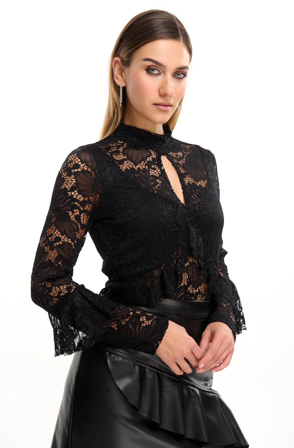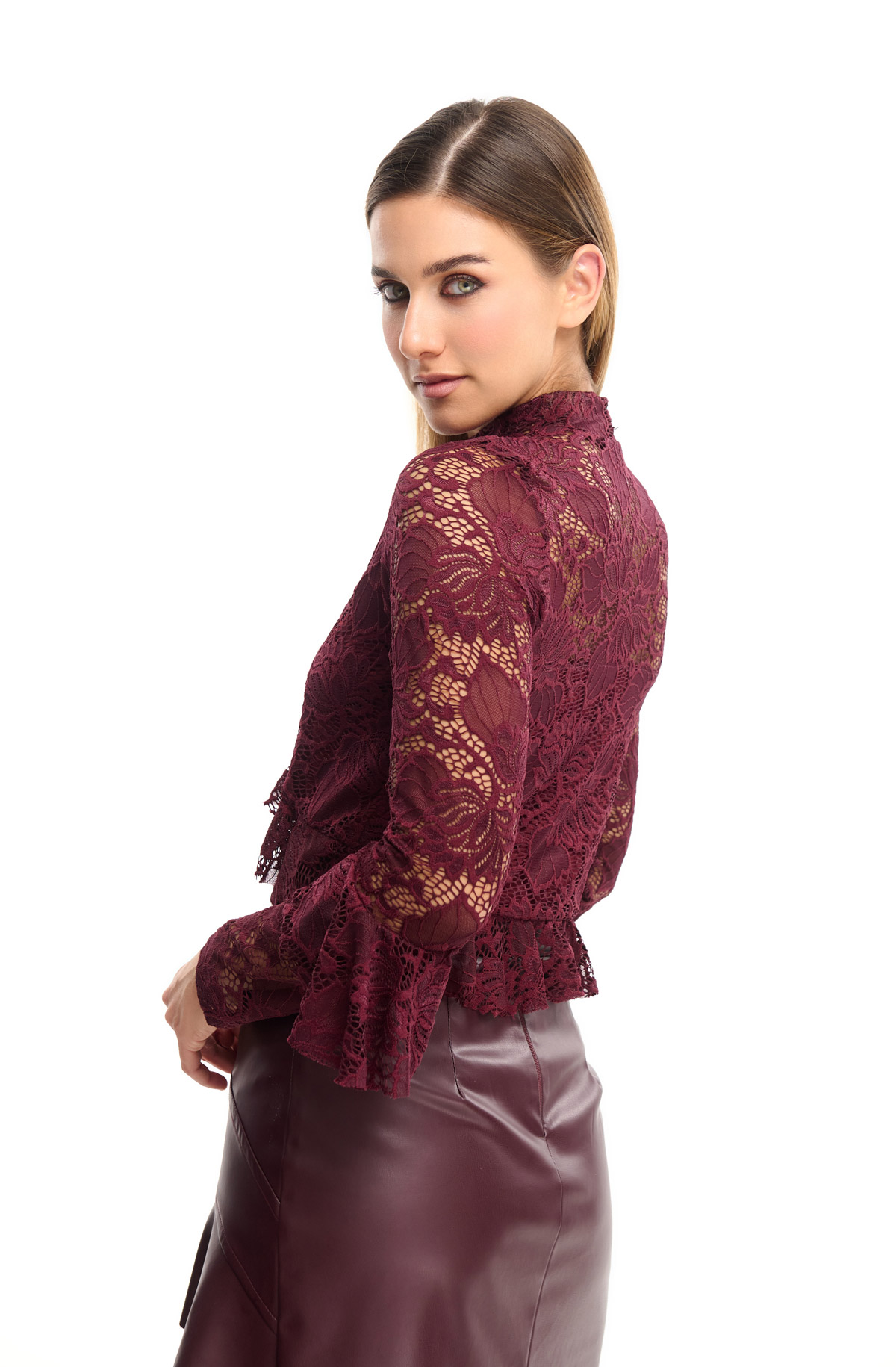 Γυναικεία μπλούζα με δαντέλα και μακριά μανίκια .Είναι ελληνικής κατασκευής. Διαθέτει άνοιγμα μπροστά.
