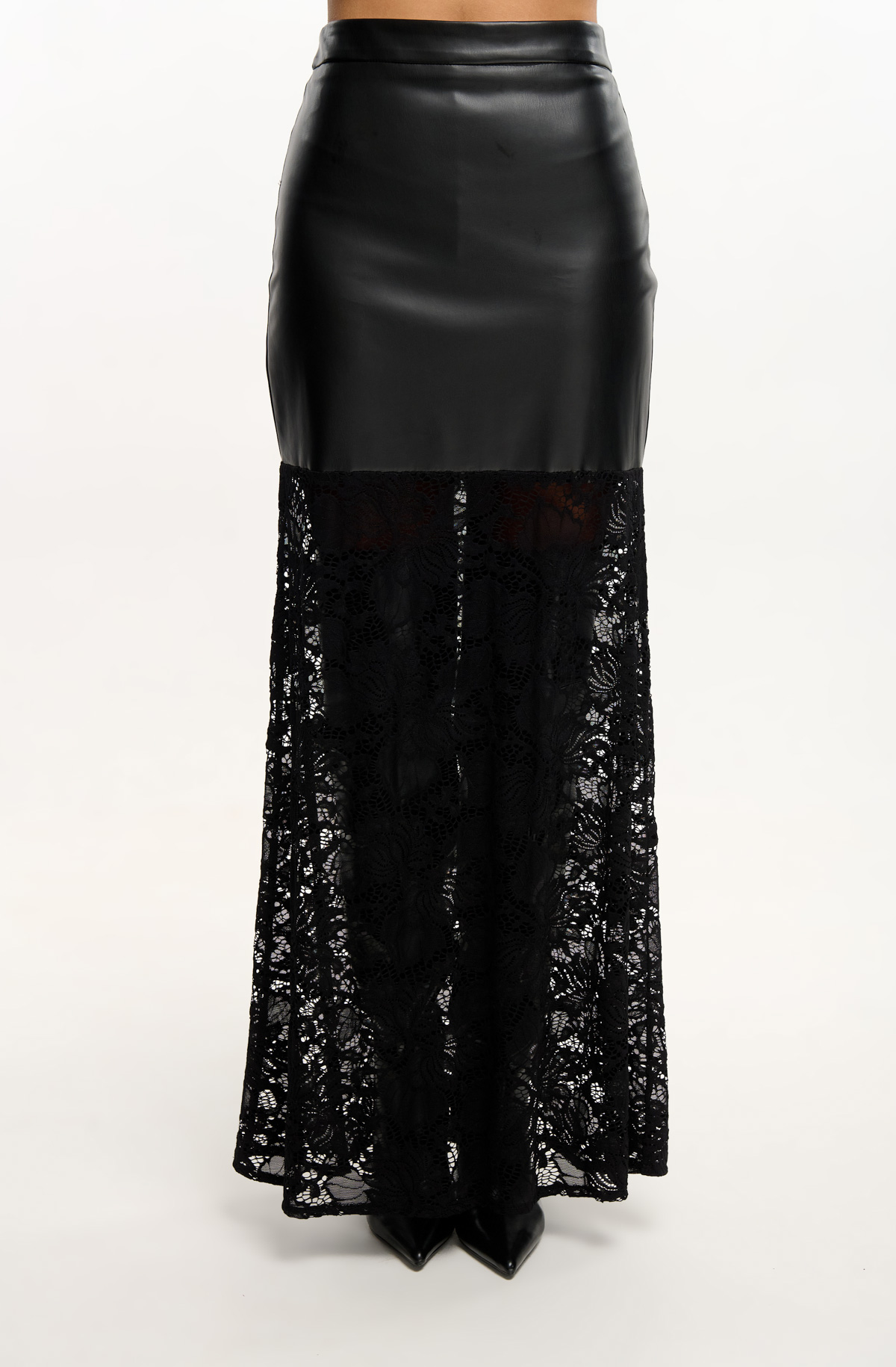 Μακρυά φούστα από δερματίνη και δαντέλα