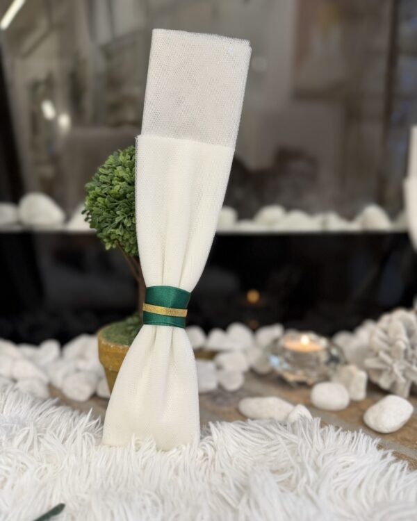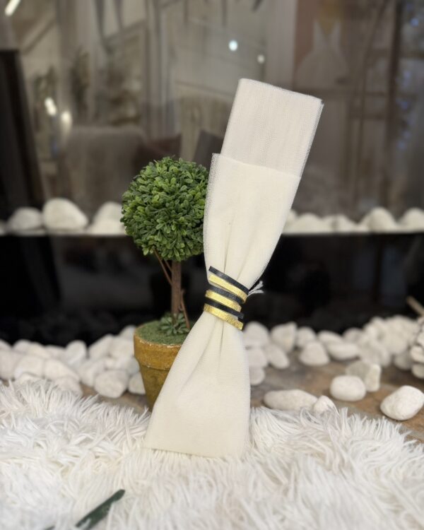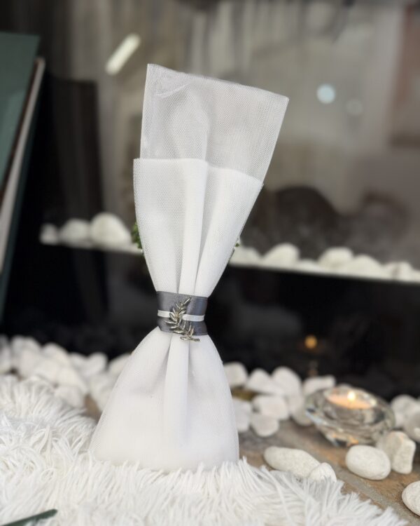 Μπομπονιέρα Γάμου Τούλι Ύφασμα με κορδέλα και μεταλλικό σχέδιο. Και την κορδέλα της επιλογής σας.