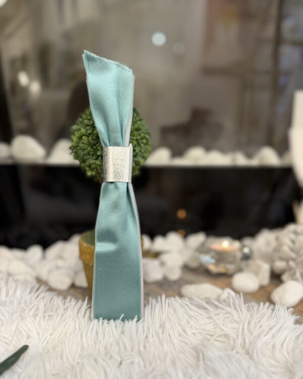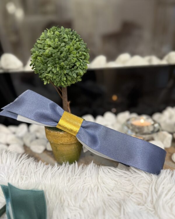 Μπομπονιέρα Γάμου τούλινη με δαχτυλίδι από χρυσό η ασημί σύρμα .Η φαρδιά σατέν κορδέλα να αγκαλιάζει όλη τη μπομπονιέρα. Υπάρχει δυνατότητα επιλογής χρώματος στις κορδέλες.
