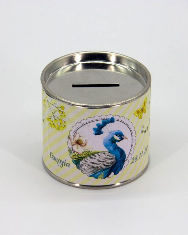 Μπομπονιέρα µμεταλλικό κουτί µε καπάκι κουμπαρά, διαμέτρου Φ7εκ και ύψους 7εκ. και περιμετρικό αυτοκόλλητο με 4χρωμη προσωποποιημένη εκτύπωση. Παραδίδεται ξεχωριστά (κουτί, καπάκι, αυτοκόλλητο) προς επεξεργασία και στολισμό. Το εικονιζόμενο εικαστικό, καθώς και τα χρώματα είναι ενδεικτικά, διάλεξε το θέμα της βάπτισή σου μέσα από τις επιλογές μας, δες τα εδώ. Συσκευασία 10τμχ (Κουτί & αυτοκόλλητο).