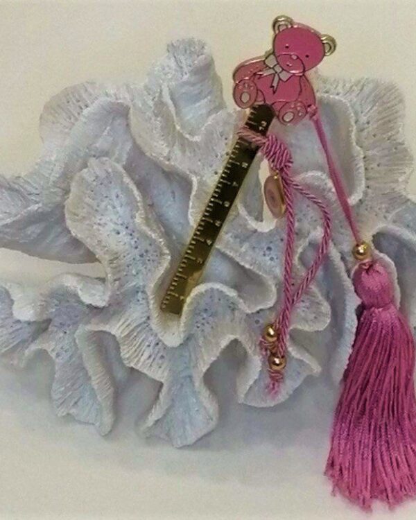 Δώρο γέννησης ροζ αρκουδάκι επιχρυσωμένο με 24 καράτια , με αρκουδάκι και μεζούρα από σμάλτο, μεταξωτή φούντα και κορδόνι σε ροζ. Ξεχωριστό δώρο για νεογέννητα ή νεοφώτιστα παιδιά! Συνολικό μήκος 25εκ., διακοσμητικό 15εκ. Οι χειροποίητες δημιουργίες του Tresento είναι επιχρυσωμένες με 24 καράτια και διακοσμημένα με ημιπολύτιμους λίθους και σμάλτο. Ενδέχεται να χρειαστούν έως 15 εργάσιμες μέρες για την κατασκευή τους. Ελληνικής κατασκευής.