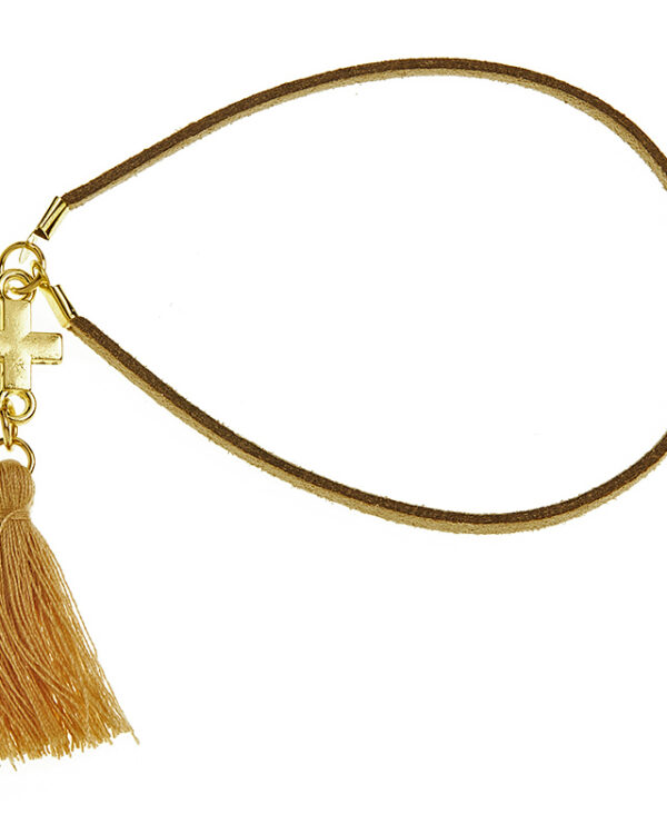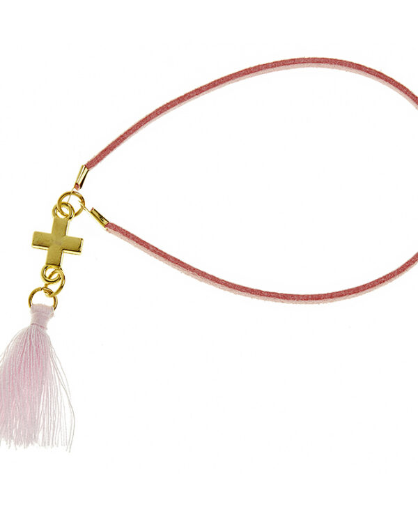 Μαρτυρικά βραχιολάκια για βάπτιση σε δερματάκι. Περιλαμβάνει χρυσό σταυρό και φούντα.