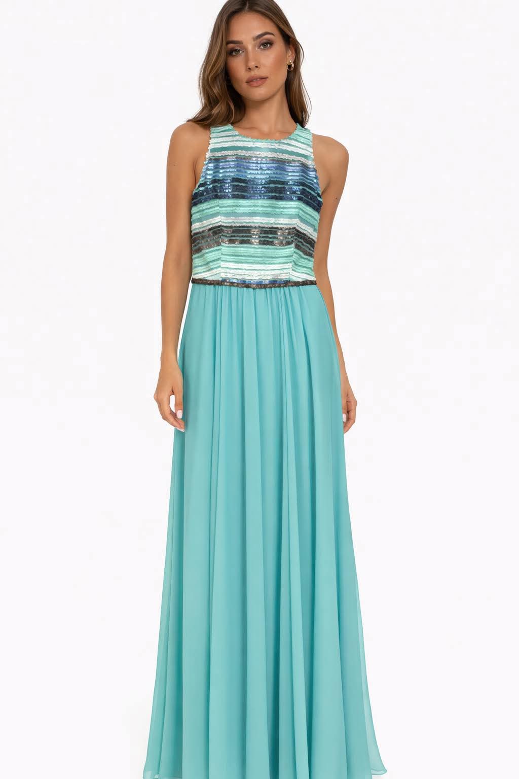 Maxi ρομαντικό φόρεμα σε υπέροχο και μοντέρνο οινοπνευματί χρώμα που αναδεικνύει τη σιλουέτα με κομψό και σύγχρονο τρόπο. Το κομψό σχέδιο με αμάνικο κόψιμο και διακριτικό λαιμόκομμα χαρίζει θηλυκότητα, οι παγιέτες προσθέτουν λάμψη και πολυτέλεια, η αέρινη φούστα από μουσελίνα προσθέτει κίνηση σε κάθε βήμα και κλείνει στο πίσω μέρος με φερμουάρ.