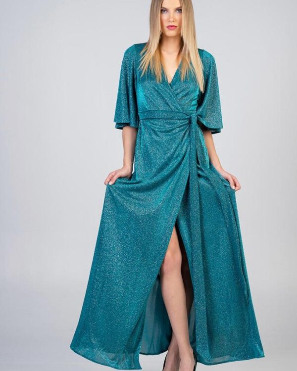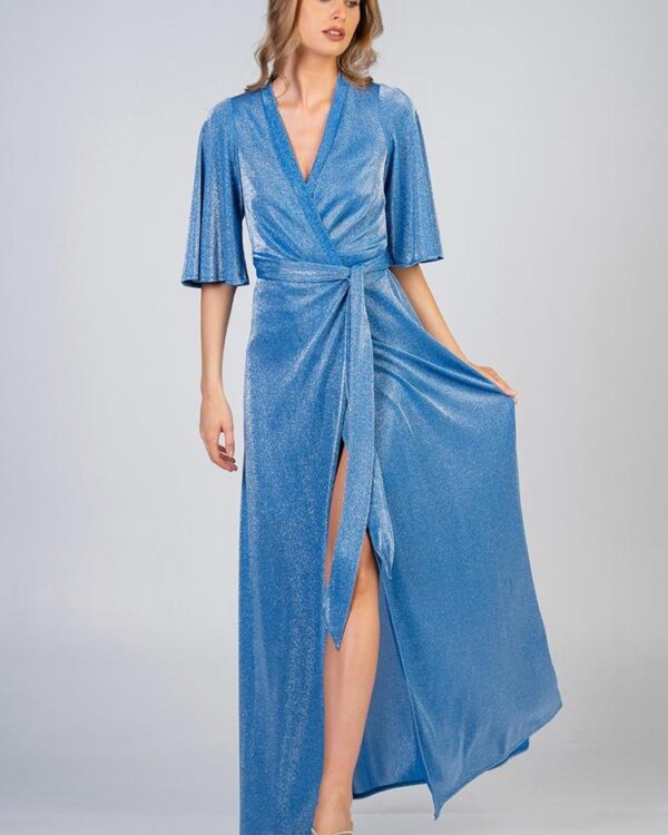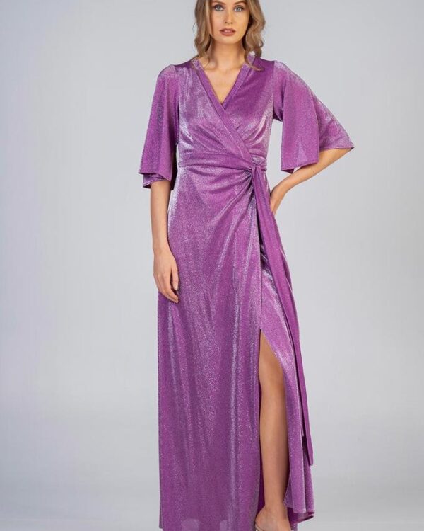 Maxi φόρεμα με μανίκι 3/4. Είναι κρουαζέ και διαθέτει σκίσιμο. Στην πλάτη είναι κλειστό