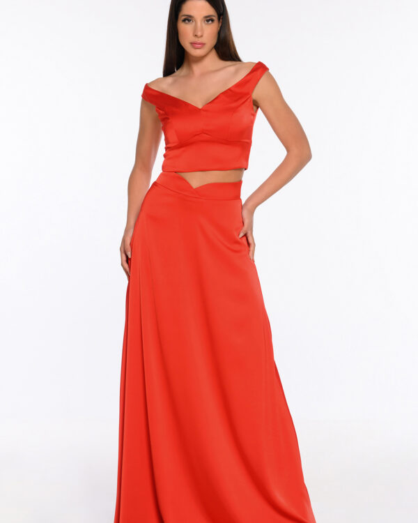 Maxi σατέν φούστα με μικρό άνοιγμα ψηλά στην μέση