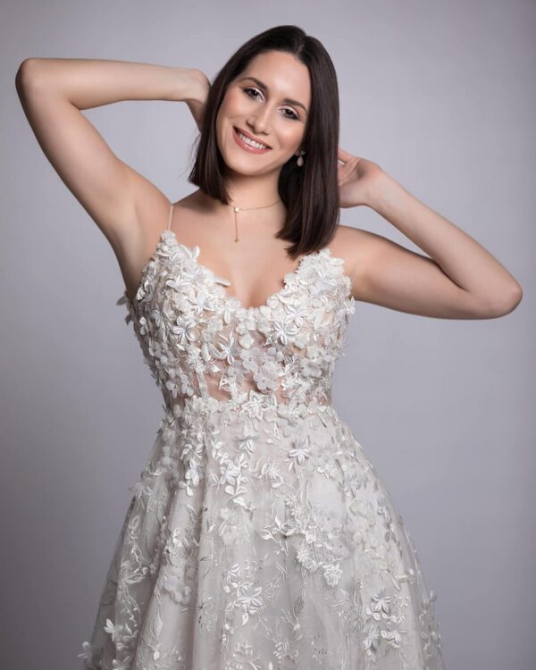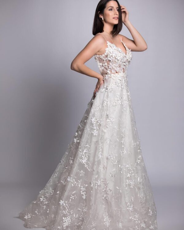 Νυφικό ρομαντικό από γαλλική δαντέλα και μεταξωτά λουλούδια, πολύ ανοιχτή πλάτη και πολύ ωραίο διακριτικό V στο ντεκολτέ. Ένα μοναδικό νυφικό ευρωπαϊκής προέλευσης ιδανικό για νύφες που θέλουν να βγουν από παραμύθι. Πολλές νύφες μας μας έχουν εμπιστευτεί και έχουν αγοράσει με τις συμβουλές μας το νυφικό τους online. Αν δεν είσαι σίγουρη για την εφαργαγή του μπορείς να κλείσεις ραντεβού για πρόβα στο [email protected] για να επισκεφτείς το φυσικό μας κατάστημα και κέρδισε 10% έκπτωση.
