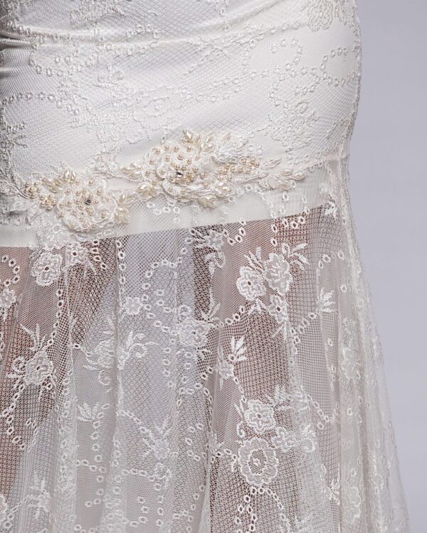 Νυφικό ρομαντικό γοργονέ από μοντέρνα δαντέλα δίχτυ, με καταπληκτική εφαρμογή στην περιφέρεια, διαφάνεια στα πόδια και εντυπωσιακή διαφάνεια στην πλάτη με γαλλική δαντέλα. Ένα μοναδικά chic νυφικό ευρωπαϊκής προέλευσης ιδανικό για νύφες που αγαπούν το απλό και το διαφορετικό ταυτόχρονα! Πολλές νύφες μας μας έχουν εμπιστευτεί και έχουν αγοράσει με τις συμβουλές μας το νυφικό τους online.