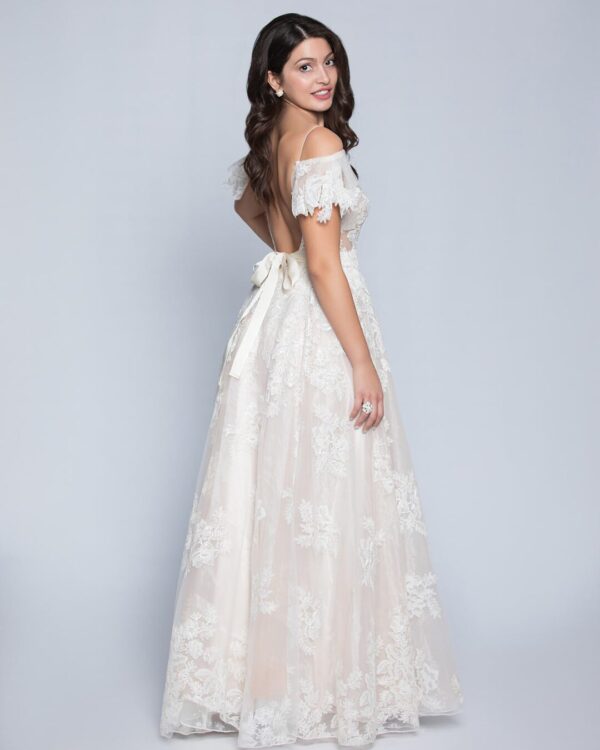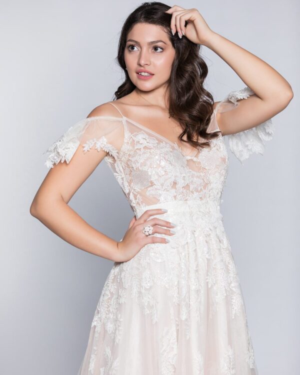 Νυφικό στο χρώμα της πούδρας, από γαλλική ανάγλυφη κεντημένη με παγιέτα δαντέλα στο χρώμα της πουδράς. Το νυφικό έχει κεντημένη διαφάνεια στο μπούστο, γαλλικό μανικάκι, βαθύ V πίσω, με grow κορδέλα στο χρώμα της πούδρας. Το νυφικό είναι μοναδικό και είναι μόνο προς πώληση, ώστε να είσαι σίγουρη ότι θα είναι μοναδικά ξεχωριστό όπως σου αρμόζει. Όλα μας τα νυφικά προέρχονται από ευρωπαϊκούς οίκους μόδας. Ολοκαίνουργια νυφικά 2019 και διατίθονται μόνο για αγορά. Ανακάλυψε τα ιδανικά στέφανα για τον ονειρεμένο γάμο σου! Πολλές νύφες μας μας έχουν εμπιστευτεί και έχουν αγοράσει με τις συμβουλές μας το νυφικό τους online. Αν δεν είσαι σίγουρη για την εφαργαγή του μπορείς να κλείσεις ραντεβού για πρόβα στο [email protected] για να επισκεφτείς το φυσικό μας κατάστημα και κέρδισε 10% έκπτωση.