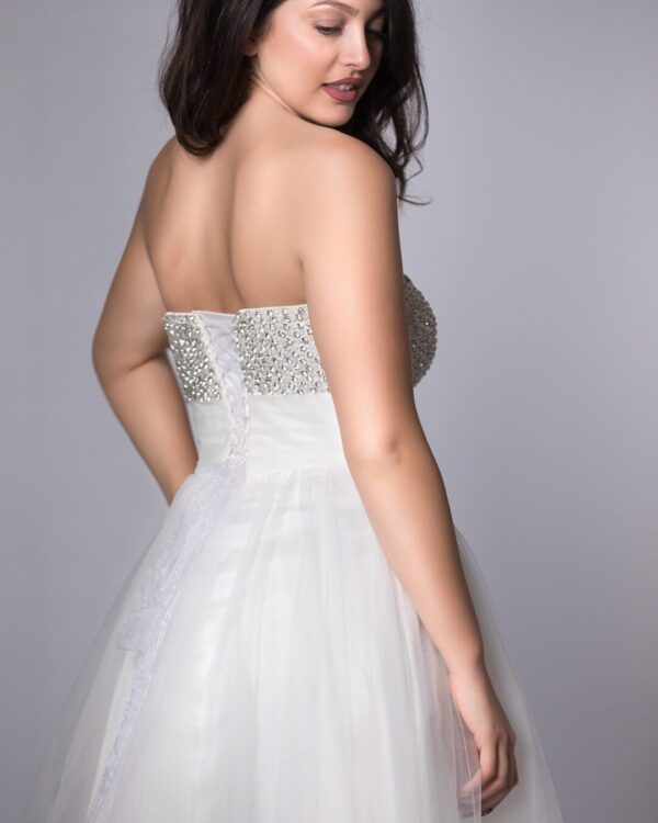 Νυφικό στράπλες με swarovski κεντημένα στο μπούστο και γαλλικό τούλι, σε άλφα γραμμή. Δέσιμο χιαστί στην πλάτη. Άνετη εφαρμογή και ενδείκνυται για νύφες με μεγάλο μπούστο. Μπορεί να προστεθεί τιράντα κεντημένη με τις ανάλογες πέτρες. Το νυφικό είναι μοναδικό και είναι μόνο προς πώληση, ώστε να είσαι σίγουρη ότι θα είναι μοναδικά ξεχωριστό όπως σου αρμόζει. Πολλές νύφες μας μας έχουν εμπιστευτεί και έχουν αγοράσει με τις συμβουλές μας το νυφικό τους online. Αν δεν είσαι σίγουρη για την εφαργαγή του μπορείς να κλείσεις ραντεβού για πρόβα στο [email protected] για να επισκεφτείς το φυσικό μας κατάστημα και κέρδισε 10% έκπτωση.