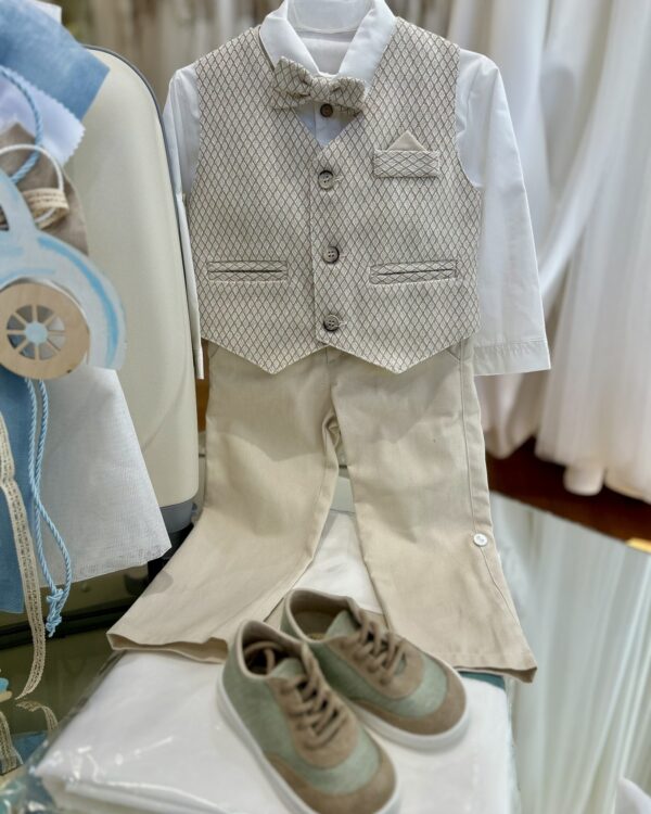 Ολοκληρωμένο πακέτο βάπτισης Αυτοκινητάκι. Το πακέτο περιλαμβάνει τροχήλατη βαλίτσα, λαδόπανα, 3 κεράκια κολυμπήθρας, σαπουνάκι, μπουκαλάκι λαδιού και 50 μαρτυρικά. Επίσης περιέχει το ρούχο και παπούτσι της επιλογησ σας (για το συγκεκριμένο ρούχο και παπούτσι να προηγηθεί τηλεφωνική επικοινωνία ).