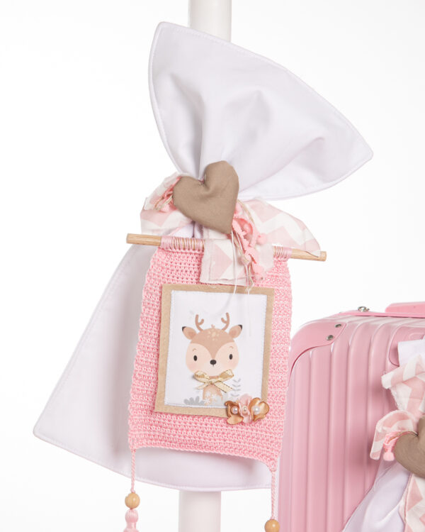 Ολοκληρωμένο πακέτο βάπτισης με θέμα αλεπουδάκι. Το πακέτο περιλαμβάνει τροχήλατη βαλίτσα, λαδόπανα, 3 κεράκια κολυμπήθρας, σαπουνάκι, μπουκαλάκι λαδιού και 50 μαρτυρικά