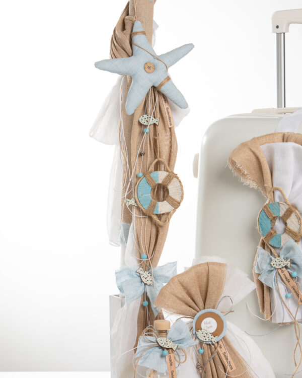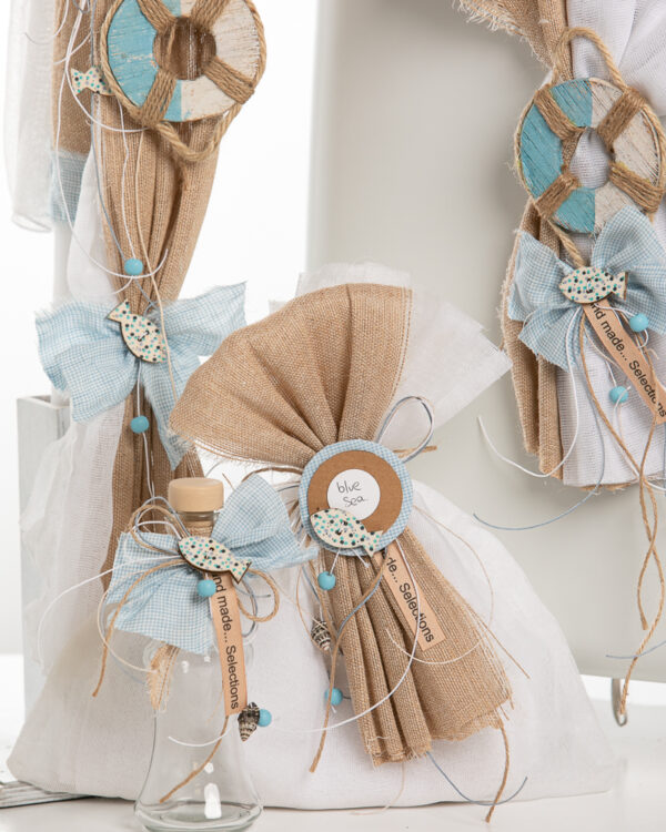 Ολοκληρωμένο πακέτο βάπτισης με θέμα blue sea. Το πακέτο περιλαμβάνει τροχήλατη βαλίτσα, λαδόπανα, 3 κεράκια κολυμπήθρας, σαπουνάκι, μπουκαλάκι λαδιού και 50 μαρτυρικά.