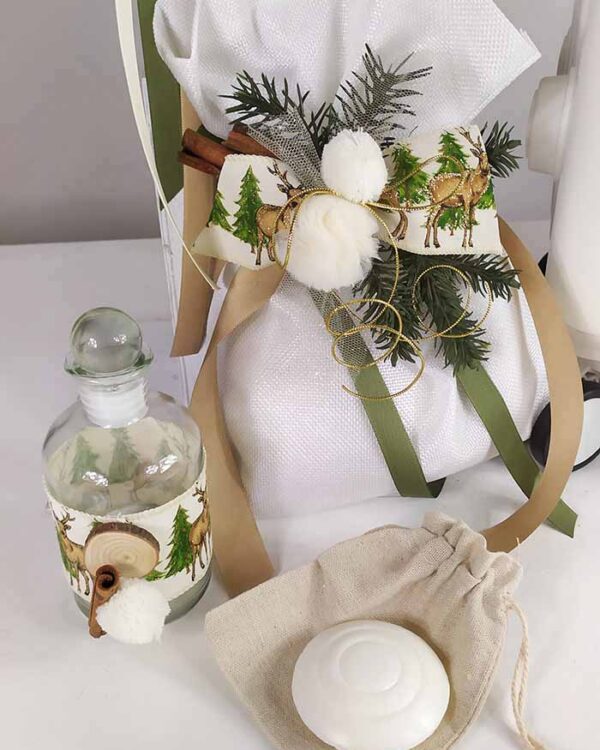 Ολοκληρωμένο πακέτο βάπτισης με θέμα Χριστουγεννιάτικο έλατο. Το πακέτο περιλαμβάνει τροχήλατη βαλίτσα, λαδόπανα, 3 κεράκια κολυμπήθρας, σαπουνάκι, μπουκαλάκι λαδιού και 50 μαρτυρικά.