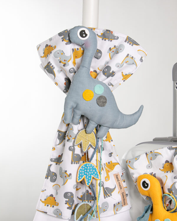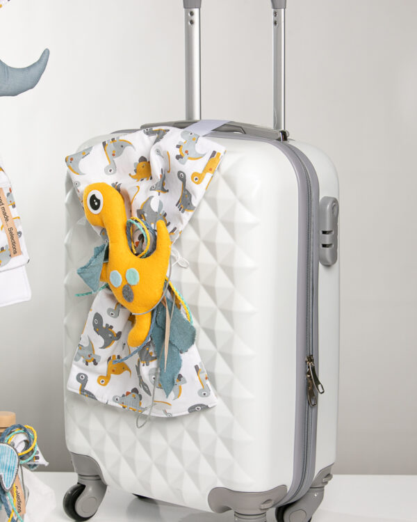 Ολοκληρωμένο πακέτο βάπτισης με θέμα δεινόσαυρος. Το πακέτο περιλαμβάνει τροχήλατη βαλίτσα, λαδόπανα, 3 κεράκια κολυμπήθρας, σαπουνάκι, μπουκαλάκι λαδιού και 50 μαρτυρικά.