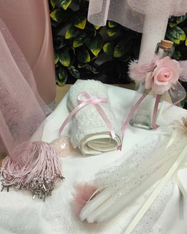Ολοκληρωμένο πακέτο βάπτισης με θέμα λουλούδια. Το πακέτο περιλαμβάνει τροχήλατη βαλίτσα, λαδόπανα, 3 κεράκια κολυμπήθρας, σαπουνάκι, μπουκαλάκι λαδιού, 50 μαρτυρικά και καλτσούλες.
