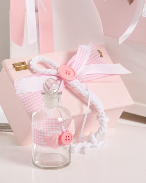 Ολοκληρωμένο πακέτο βάπτισης με θέμα πριγκίπισσα. Το πακέτο περιλαμβάνει ξύλινο μπαούλο, λαδόπανα, 3 κεράκια κολυμπήθρας, σαπουνάκι, μπουκαλάκι λαδιού και 50 μαρτυρικά.