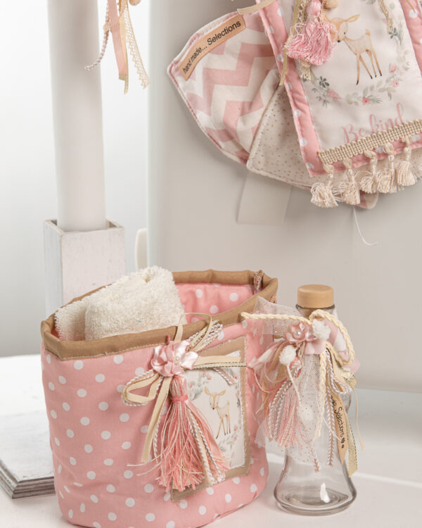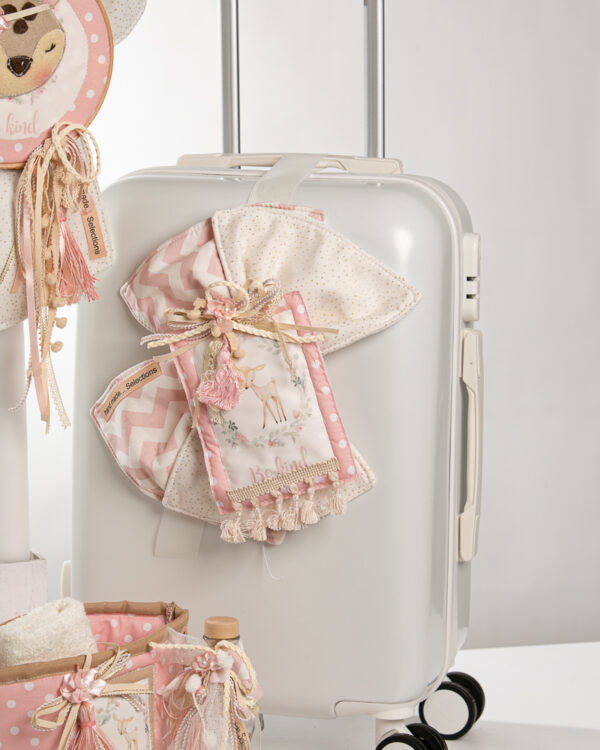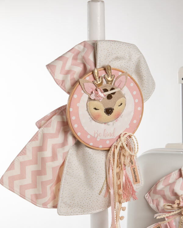 Ολοκληρωμένο πακέτο βάπτισης με θέμα ταρανδάκι. Το πακέτο περιλαμβάνει τροχήλατη βαλίτσα, λαδόπανα, 3 κεράκια κολυμπήθρας, σαπουνάκι, μπουκαλάκι λαδιού και 50 μαρτυρικά
