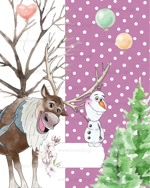 Προσκλητήριο βάπτισης για κορίτσι, από τη σειρά boheme, με θέμα την Άννα και την Έλσα από το Frozen στο πιο χαρούμενο χειμωνιάτικο χριστουγεννιάτικο σκηνικό.