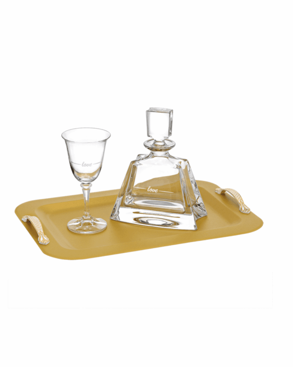 Σετ κουμπάρου από κρύσταλλο Βοημίας με επίχρυσο στολισμό. Το σετ περιλαμβάνει περίτεχνο δίσκο, ιδιαίτερη μποτίλια κρασιού και ένα ποτήρι από κρύσταλλο Βοημίας. Όλα είναι χειροποίητα και κατασκευασμένα στην Ελλάδα.