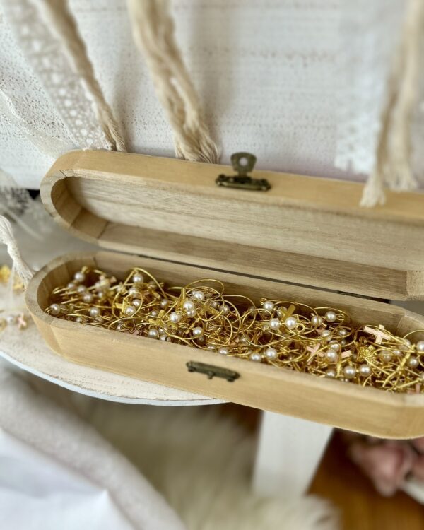 Σετ βάπτισης με βελούδινο μπαούλο. Το πακέτο περιλαμβάνει μεγάλο βελούδινο μπαούλο, μικρό βελούδινο κουτί, στολισμό λαμπάδας με θέμα της επιλογής σας (δεν συμπεριλαμβάνεται το κερί), λαδόπανα, 3 κεράκια κολυμπήθρας, σαπουνάκι, μπουκαλάκι λαδιού και 50 μαρτυρικά της επιλογής σας.