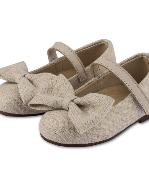 Βαπτιστικά παπούτσια Υφασμάτινο γοβάκι με χειροποίητο ασορτί φιόγκο, από δέρμα και ύφασμα σε εκρού χρώμα.