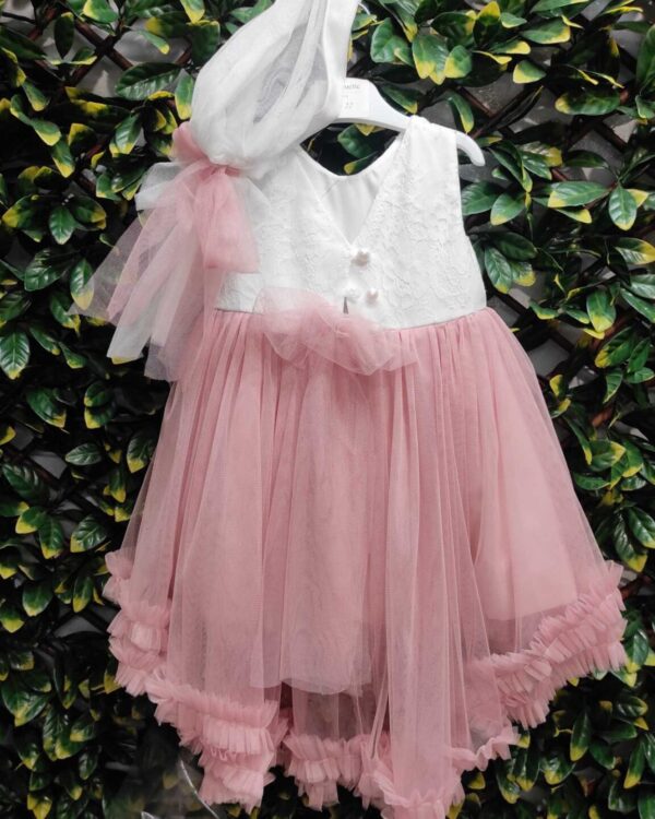 Βαπτιστικό φόρεμα με δαντέλα σε ροζ και άσπρο. Καλύπτει εως 24 μηνών.