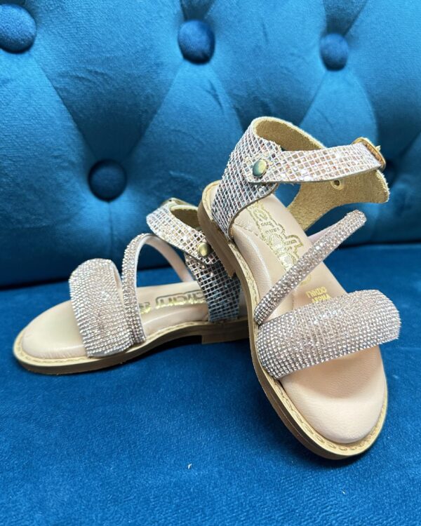 Βαπτιστικό παπούτσι πεδιλάκι σε ασημί και χρυσό χρώμα και στρας. Με δερμάτινο ανατομικό πάτο για ξεκούραστο περπάτημα, κατάλληλο για τα πρώτα βήματα του παιδιού. Ελληνικής ραφής
