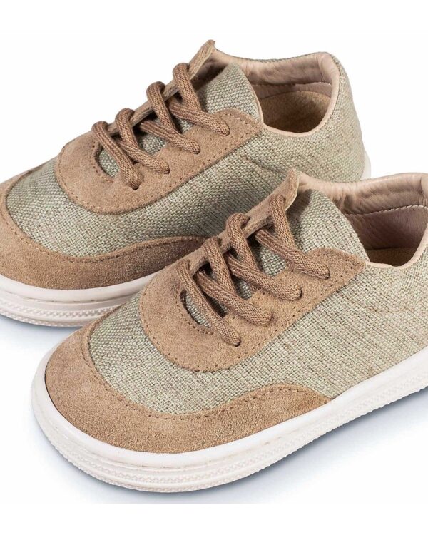 Χειροποίητο βαπτιστικό παπούτσι Babywalker με κορδόνια σε φυστική – μπεζ χρώμα . Με δερμάτινο ανατομικό πάτο για ξεκούραστο περπάτημα, κατάλληλο για τα πρώτα βήματα του παιδιού. Ελληνικής ραφής
