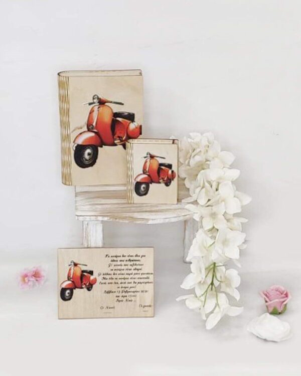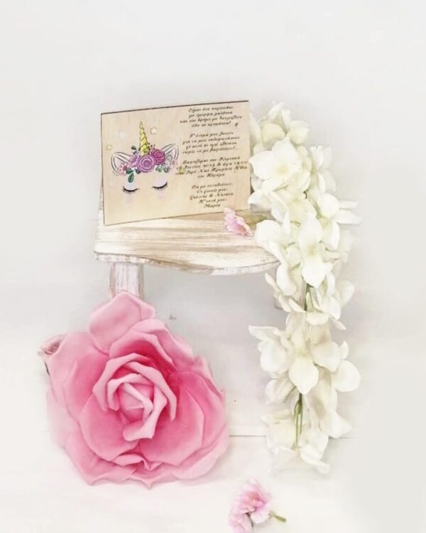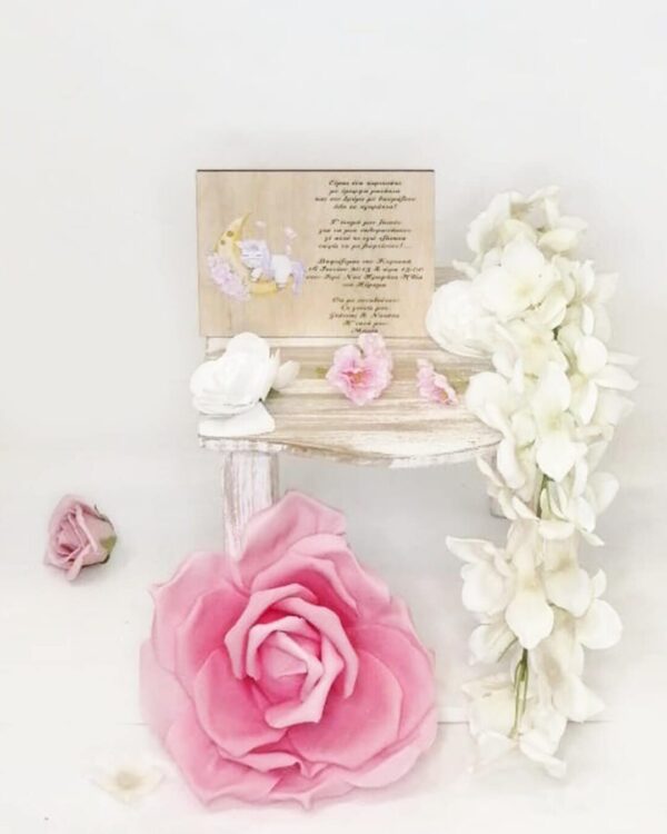Ξύλινο προσκλητήριο με laser και ψηφιακή εκτύπωση του θέματος σας, διάστασης ύψος 12εκ. πλάτος 16εκ, σε σημύδα 5χιλ. Το εικονιζόμενο εικαστικό, καθώς και τα χρώματα είναι ενδεικτικά. Διάλεξε το θέμα της βάπτισης (Δες τα θέματα εδώ), συνδύασέ το με ένα πλήρες σετ βάπτισης (Δες τα εδώ) και με την μπομπονιέρα ξύλινο κουτάκι, όλα προσαρμοσμένα στο θέμα σου και εντυπωσίασε τους καλεσμένους σου!