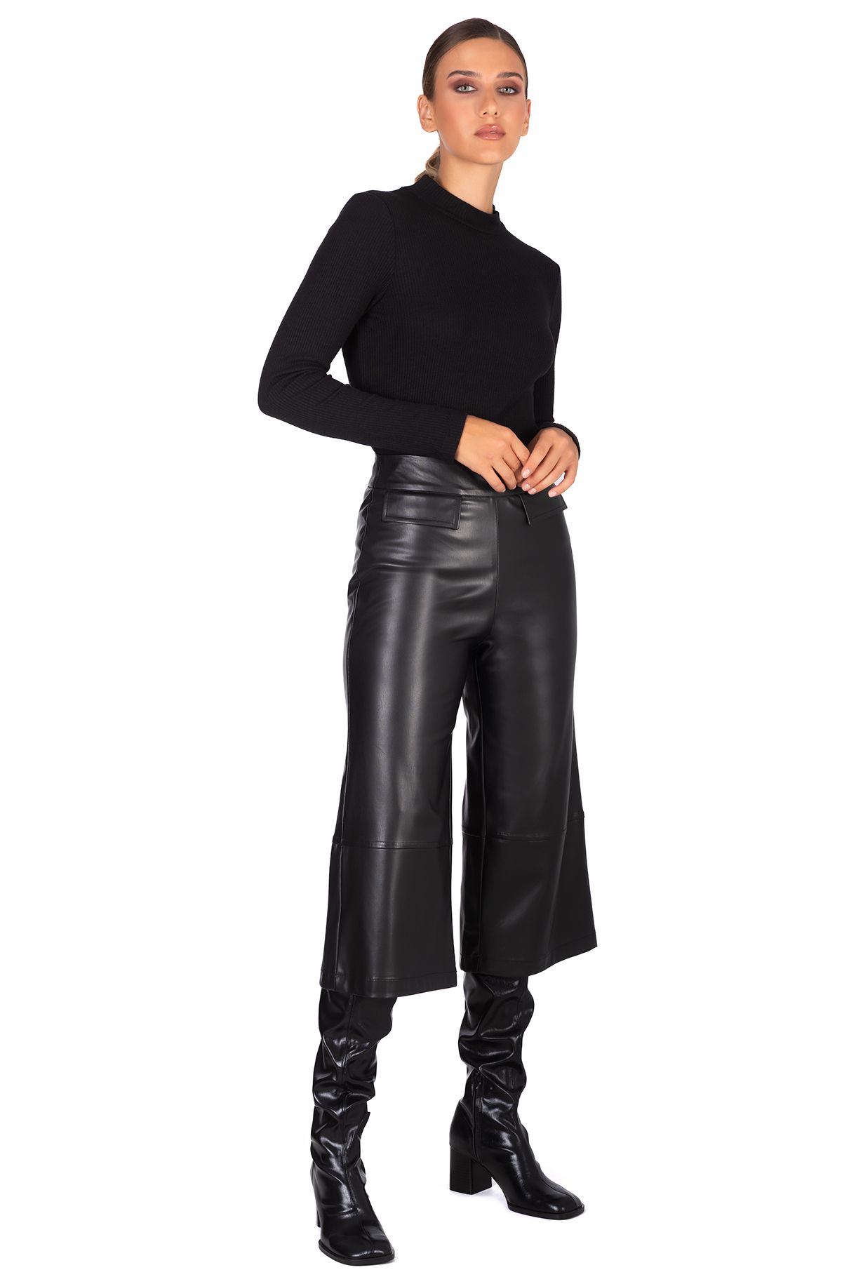 Μαύρο δερμάτινο παντελόνι με διπλή ζώνη